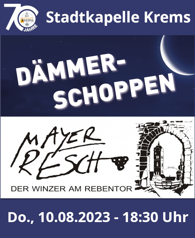 Aufg'spielt wurde beim Heurigen Mayer-Resch in Stein an der Donau. Auf Einladung von Barbara bzw. Johannes Beer und Hans Resch, allesamt aktive Mitglieder unseres Musikvereins, spielte die Stadtkapelle Krems am Do., 10. August 2023 einen Dämmerschoppen in der Steiner Kellergasse.